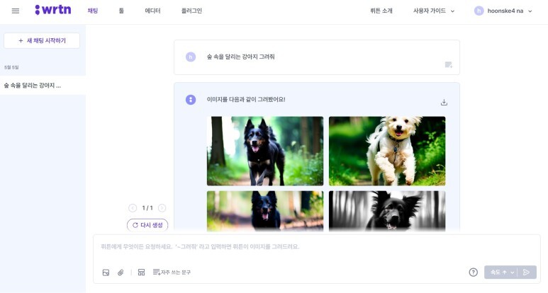 더불어 이미지생성 기능도 채팅 플랫폼 내에서 지원합니다. 이미지 생성 AI가 기존 서비스인 Dall-E나 Midjurney등이 영어만 지원하는 점을 고려한다면 한국어를 지원하는 뤼튼이 한국에서는 접근성이 더 좋을듯 보이는데요.